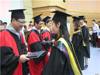 潜岳苍苍,江淮汤汤,夏商肇琪,雍容汉唐。在熟悉的校歌声中,学院院长高峰教授、副院长周双六教授、张小俊教授及各系主任依次为每位毕业生拨正流苏,颁发毕业证书及学位证书。