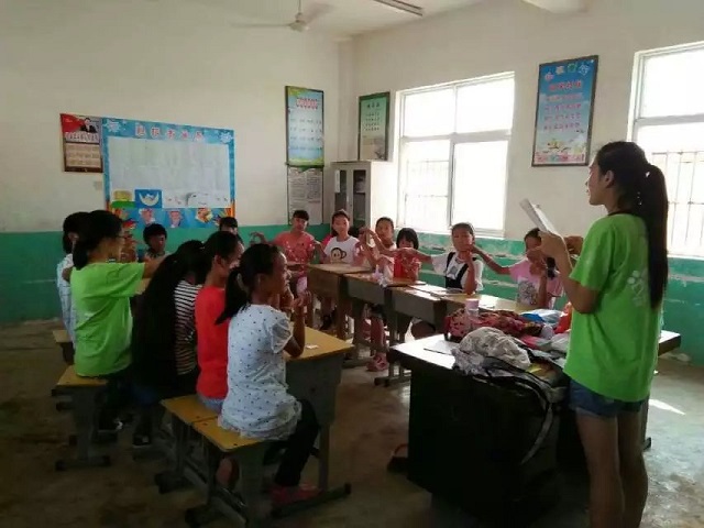 在“阳光成长”主题文体活动中,实践队员们带领学生们唱歌、跳舞,让学生体会到不一样的校园氛围。没有操场,实践队员们就自己打扫,扫出一片空地,作为孩子们的舞台。为了给孩子们防晒,实践队员们让孩子们站在阴凉处,自己则站在烈日底下。付出的一滴滴汗水在结束的文艺汇演时却变成了不舍得泪水,流进了实践队员和留守儿童的心里,滋润着心灵。