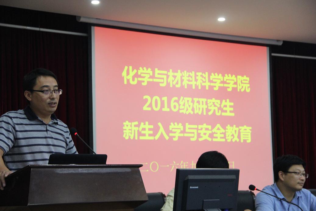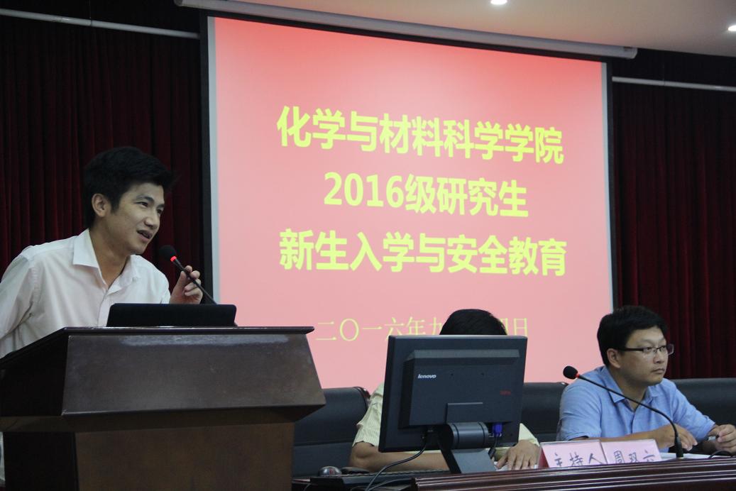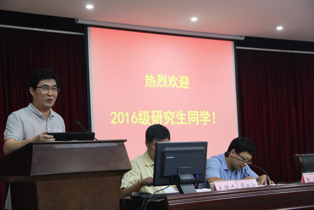 2016级研究生新生入学与安全教育在赭山校区图书馆报告厅举行。院领导班子成员、各学位点负责人、导师代表、研究生秘书、新生辅导员及全体2016级研究生新生参加了会议。大会由科研副院长周双六主持。