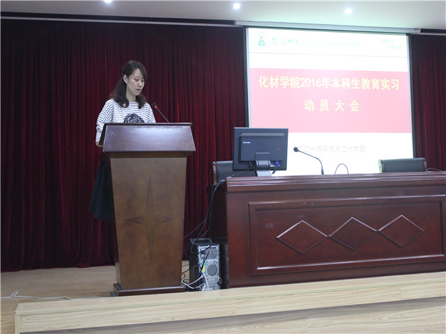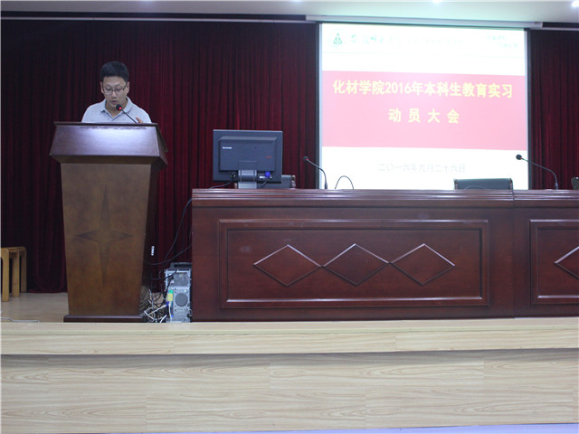 党委副书记余妍霞、副院长张小俊,化学系副主任孙影,教育实习指导老师,辅导员及2013级化学专业、卓越班化学方向全体同学,大会由化学系主任阚显文老师主持。