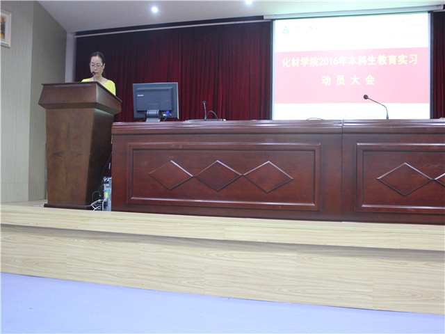 历来高度重视学生教育实习工作,学院及化学系多方联系实习学校,专门配备实习指导教师,分组进行校内培训,保证学生能以最佳状态投身于教育实习工作中。通过此次实习动员大会及一线化学老师的专题报告,同学们对教育实习工作有了更加全面的认识和了解,进一步明确自己的职责和任务。