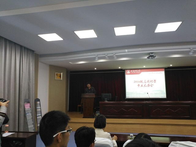 首先,郝二宏老师代表应用化学系对16级应用化学全体新生的到来表示热烈的欢迎。在辅导员朱姗对16级新生基本情况进行汇报后,郝二宏老师向大家解读了应用化学的含义以及专业发展前景。随后,郝二宏老师为同学们逐一介绍了应化系的任课教师,以各位优秀的老师为榜样激励同学们努力学习,潜心科研。