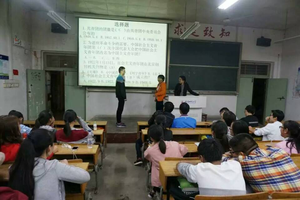 学习团章团史,树立远大理想。各团支部悉心组织团章团史专题学习班会,积极准备,勇于创新,观看红色影片、举办趣味知识竞赛,使枯燥的学习生动有趣。壮怀激烈的红色影片将大家只在历史课本上看过的无数仁人志士抛头颅洒热血壮的文字画面化,激起大家的自豪感与责任感;趣味团学知识竞赛使大家更好地认识团、了解团,在娱乐与互动中增长知识,增进友谊,加强团队合作精神。