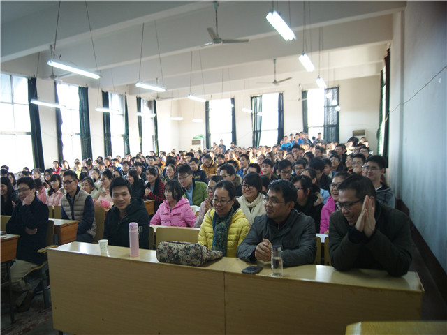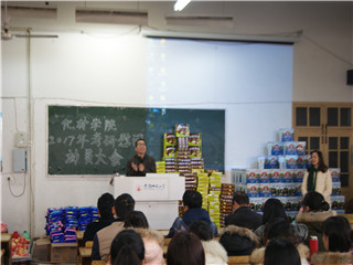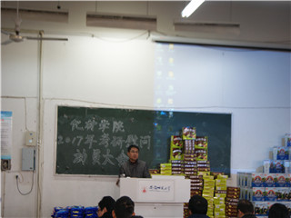 在教学楼1410教室举行2017届本科生考研慰问动员大会。院长高峰、副院长张小俊、各系负责人及二百余名考研学子参加会议,会议由院党委副书记余妍霞主持。