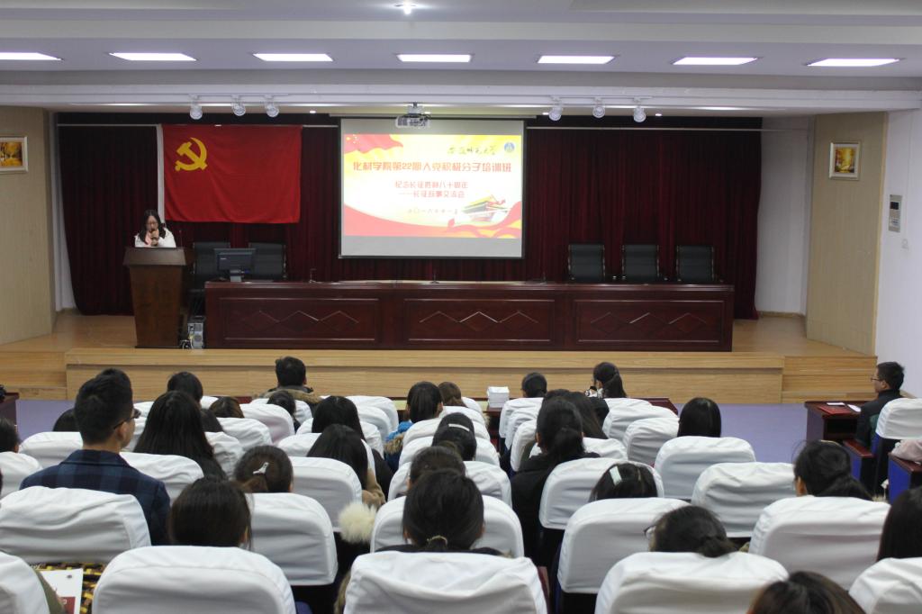 分党校在赭山校区图书馆报告厅举行了学院第22期(总第54期)入党积极分子培训班实践培训教学活动。活动以“微党课”和“长征故事会”的形式展开,学院全体入党积极分子参加了本次实践活动。