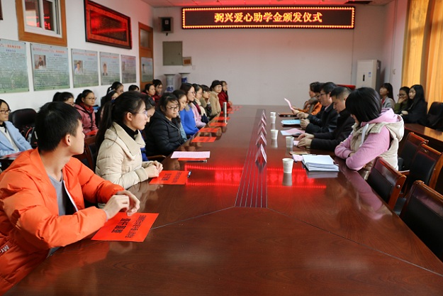 弼兴爱心助学金”的协议书》。随后,薛琦为受助学子颁发助学金。薛琦在讲话中结合自己的成长经历与工作经验启发同学们要学会分析现在、思考未来,鼓励学生要用吃苦耐劳的精神努力改变生活。