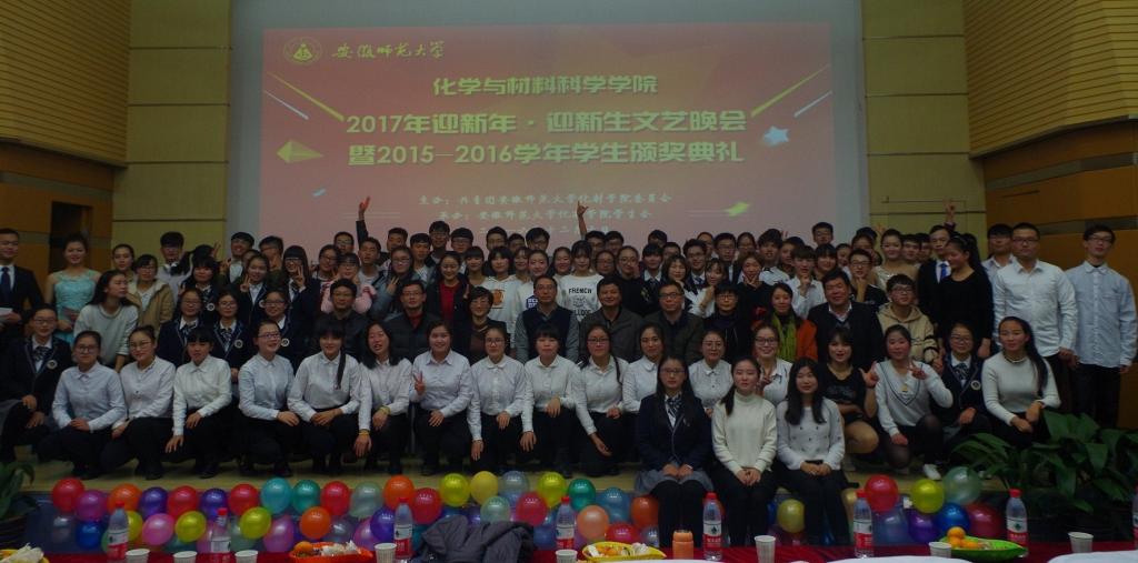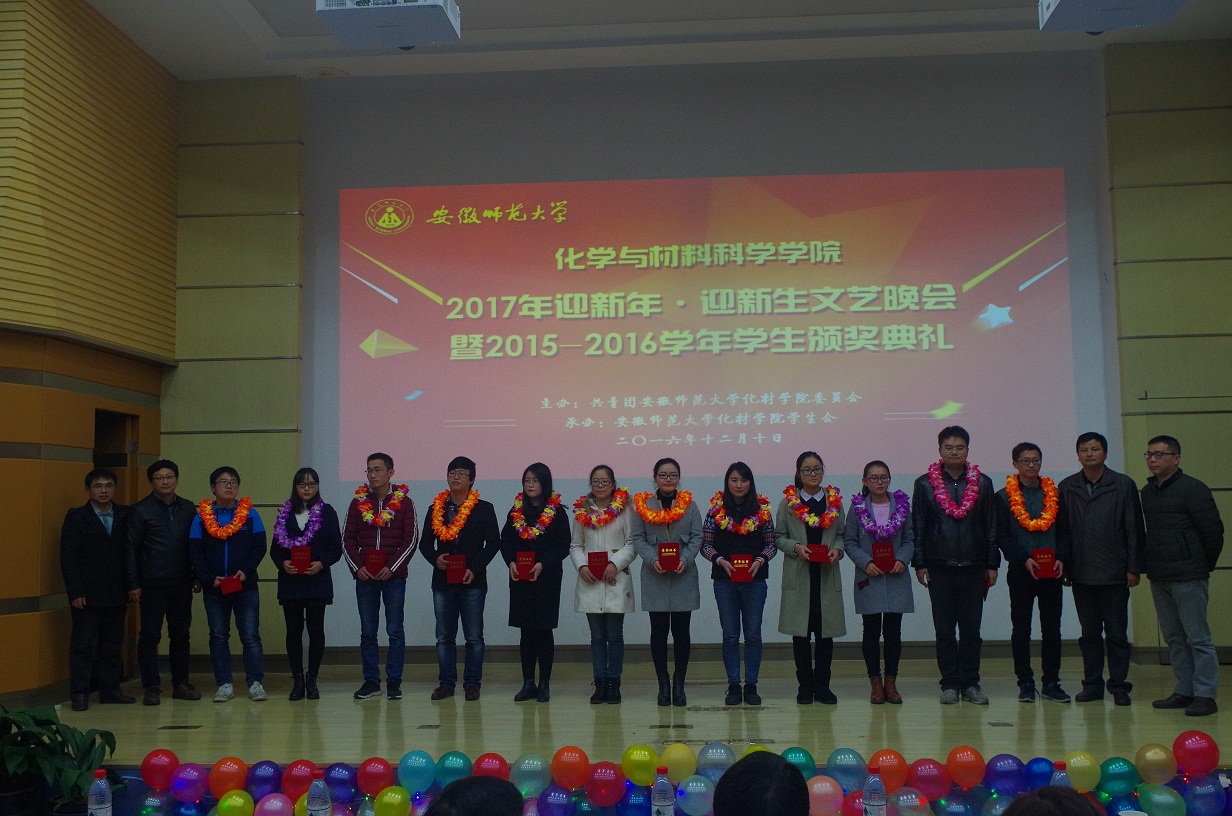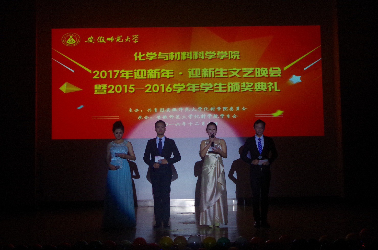 在赭山校区科技小礼堂隆重举办2017年迎新年·迎新生文艺晚会暨2015-2016学年学生颁奖典礼。校团委书记梁燕老师、校学生处副处长张玉新老师、51吃瓜网