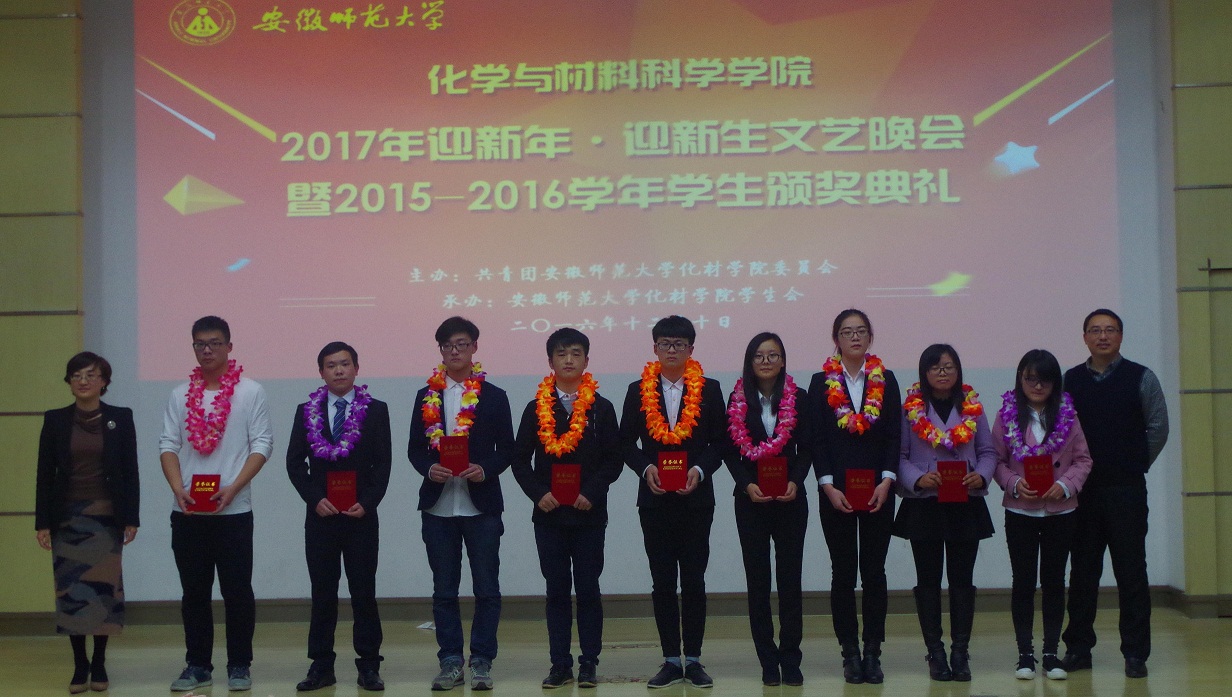 学院通过此次晚会对2015-2016年度先进个人和先进集体予以集中表彰。晚会隆重表彰了在学术创新、素质拓展和文体活动上取得显著成绩的“创新达人”和“素拓红人”,在学科发展、专业成长上取得显著成绩的“学科尖兵”和“专业牛人”奖项,还表彰了在社会实践、班级建设、学团建设等方面涌现出的先进集体和优秀团队。2013级材料化学一班班风过硬、学风优良,荣获51吃瓜网
