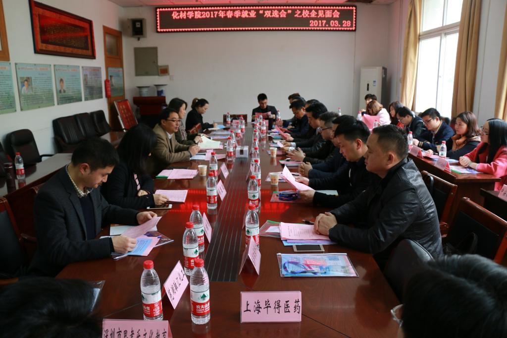 蒋建伟)校企合作谋发展,多维联动促就业。为实现2017届毕业生高质量就业,拓宽学院就业渠道,3月28日上午,化材学院2017届毕业生专场招聘会在赭山校区就业招聘大厅顺利举办。来自上海、南京、杭州、合肥等地的近30家企业、学校参加本次招聘会,为2017届毕业生提供了近500个“量身制定”的就业岗位。本场招聘会也吸引了2013级毕业生和兄弟学院学子参加。化材学院党政班子、系主任、部分教师都亲临现场,慰问招聘单位并与积极求职的毕业生同学们亲切交谈。