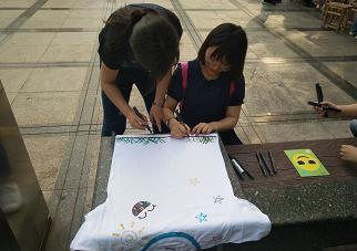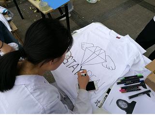 玩转沙画和手绘T恤可以说是说是整个游园会的主场,人气满满。沙画虽略显幼稚,但在同学们眼中却是找寻童年纯真乐趣、忘却成长烦恼的良机,大家三五成群共同完成一份作品,玩得不亦乐乎,最终完成44件沙画作品,其中有11份优秀作品,用色大胆,整体使人眼前一亮。为室友、为朋友手绘一件T恤,表达自己的心意,虽工程浩大,仍有许多同学为此驻足,最终成功出炉20件作品,每件作品都有自己的特色,活灵活现。