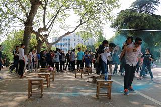 随着主持人的一声令下,参赛者冲向了第一个游戏点,“从头开始”是在两个划定的区域内四个人头顶着书进行接力,途中书不能掉落,否则从头开始,看似简单,却极大地考验身负重任的紧迫感及成员之间的协作能力。最后一个游戏“九人十足”更是让人震撼不已,在烈日下为了一个共同的目标忍着疼痛向胜利迈进。其他几个项目也都妙趣横生,同学们都积极参与,通力合作通过一个关卡,又奋力奔向下一个游戏地点,经过各队的角逐,最终产生了一二三等奖,在大家的热烈的掌声中领取奖品。