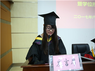 教师代表材料化学系主任王正华教授深情回顾了2017届学生们在校的点点滴滴,并希望所有毕业生们要继续坚持学习,不断提高自身业务水平;要坚守专业职责,增强社会责任感,做一名绿色、和谐的化学人;要心存感恩,永远心系母校,关心和支持母校的发展,将母校作为自己坚强的后盾,同时也要为母校增光添彩。