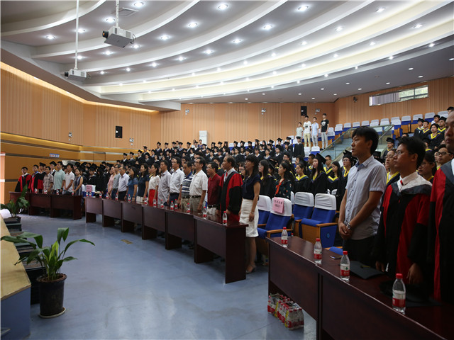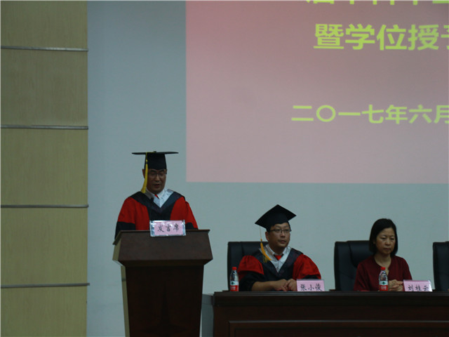 党政领导、系主任、教授委员会主任、教师代表、毕业班辅导员以及学院2017届本科毕业生参加了毕业典礼。典礼由学院党委书记汪俊武主持。