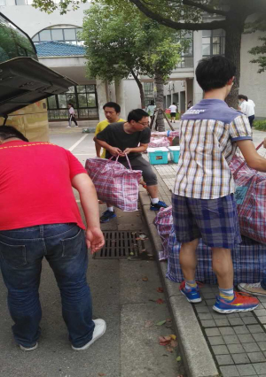 搬迁工作艰辛又繁琐,而在搬迁现场,一道道风一般的身影吹散了无助的雾霾,搭起了互助“连心桥”。学院组织了“党员突击队”,负责协助组织现场秩序,帮助同学们上下车搬迁。学院还组织了“学生会帮扶队”,为搬迁同学们提供水和备用食物、药品等,在及时帮助搬迁同学将东西搬到教室。志愿者同学们的身影穿梭在搬迁现场,用笑容和汗水展现先锋风采。搬迁现场,学院全体领导;全体系主任、副主任;辅导员老师全程值班,在组织秩序的同时还率先示范帮扶需要帮助的同学搬物品。师生齐心,共同协作,用共同的臂膀撑起了化材的脊梁!