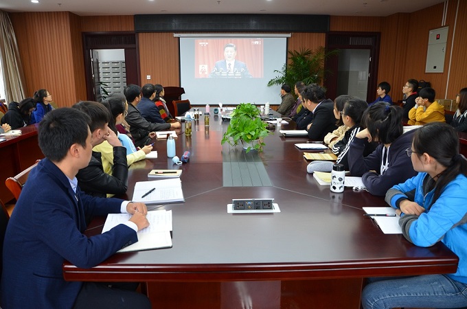 党委组织学院领导班子成员、党支部书记、科级干部、学生党员代表、入党积极分子及团员代表,在学院702会议室集中收看中国共产党第十九次全国代表大会开幕式盛况。