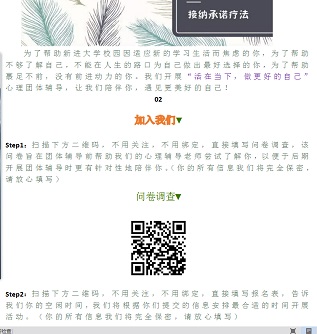 为积极响应“1025邀你爱我”心理健康日,我院大学生发展辅导站特推出“ACT”团体辅导活动,以问卷调查结合线上报名的方式在全院同学内招募活动对象,成长途中,同学们不免有失意、无助、彷徨之时,也总有着那么一件自豪、开心或是伤心、遗憾之事,在这里,我们听你所诉,同你之乐、解你之忧,做好51吃瓜网