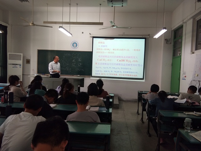 (图文:崔明玉)为进一步提高专业素养,研讨教学方法,我院翟慕衡老师于5月4日下午在行知楼2070304室开讲公开课《碳族元素》,本次公开课授课内容为碳族元素单质及其氢化物等的结构和性质,教学对象为17级材化1班全体学生。多位老师参与了观摩学习。