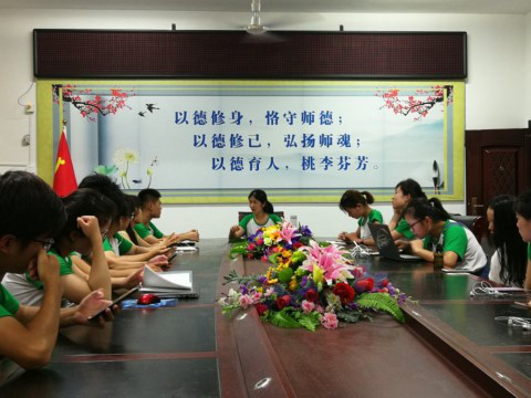 当晚,每天一次的例会在会议室中展开。会议中首先由队长对一天的工作进行了总结,并详细讲解了后面几天的日程安排。由于上课材料的问题,将课程进行了微调,具体地安排了每个任课老师后面的课程安排。并请了下午上课的两名队员谈了谈自己的代课感想。两位队员都是初次代课,都对课堂感触良多,感慨教学的不易。其中尤其是进行作业辅导的队员,由于带的是低年级学生,对纪律没有明确的概念,部分孩子较为吵闹。对此,队长强调了课堂纪律要严肃对待,保持好基本的课堂秩序。然后每一位队员轮流阐述了自己当天的工作与感悟,以及对明天工作的想法。大家的思考在交流中得以碰撞,摩擦出灵感的火花,找寻到自己的不足与待改善之处,进行一定的反思与改进。