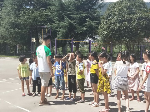 早读之后,便是上午的课程。今天上午共开展了六门课程,分别是弘扬传统文化的礼仪教学,折纸以及中国风教育,为提高孩子们音乐鉴赏能力而开设的歌曲小跳蛙教学,开发大脑的益智魔方课,提高身体素质的体育课。课程涵盖了传统文化的弘扬,休闲娱乐,大脑开发以及身体的锻炼,可以说是覆盖面十分广泛,德智体美劳全面发展。并且其中绝大部分课程是孩子们在日常的学习生活中无法接触到的,无法从学校的书本中去知晓与了解,所以孩子们的兴趣十分高昂。尤其是其中的礼仪课与体育课,课堂氛围都很好,孩子们特别积极主动的去学习,实践以及思考。传统礼仪课上,小老师将传统礼仪按照用途的不同,进行了细致的分类,并对每一类做出较为详细的注解。老师本人也将每个要教学的礼仪动作亲自示范,带着小孩子们去做,小孩子们都尽自己的努力去做好每一个动作,从中感受传统文化无言的魅力。而在另一名队员的体育课上,虽然外面的天气十分炎热,但是小孩子们仍旧主动去请求出去上课。于是很快学校操场上便充满了孩子们欢呼雀跃的身影,他们身上散发出的那种属于孩童的简单而又纯粹的快乐,仿佛感染了支教队员们,大家的脸上也不知不觉的洋溢起了儿时的那份笑容。