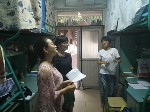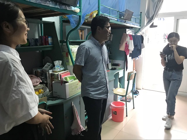 在走访过程中,学院领导和辅导员老师重点检查了宿舍的安全、卫生情况。开学之初,学院寝室整体情况较好,少数寝室在卫生和安全方面存在问题,领导老师当面提出了整改意见,力争做到安全问题“零”隐患。