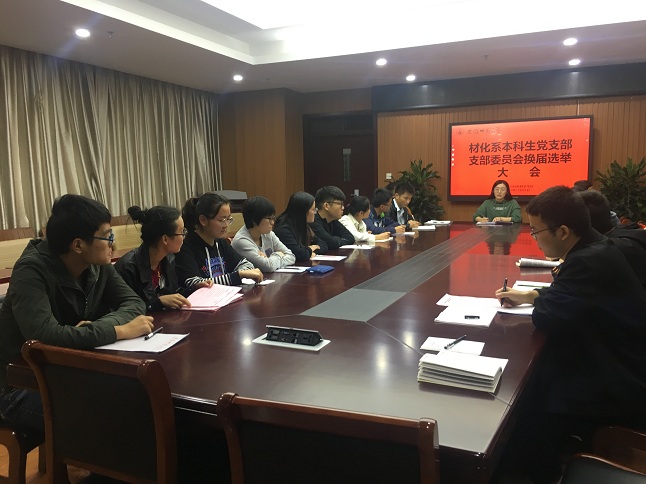 材料化学系本科生党支部在学院702会议室举行了支部委员会换届大会,支部全体党员参加了本次会议,会议由支部书记陈露主持。