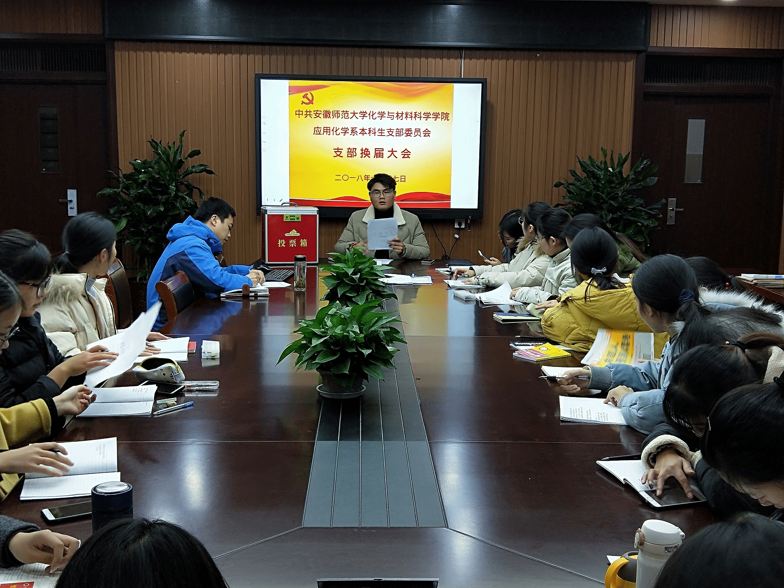 本网讯(应化系本科生党支部)12月7日晚6点30分,应用化学系本科生党支部于礼勤楼702会议室举行了党支部委员会换届选举大会,支部全体党员,发展对象参加了换届会议,本次会议由党支部书记陶勇老师主持。