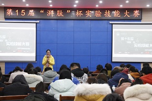 )夯实专业素养,感受美好化学,12月22日晚7点,“湃肽”杯实验技能大赛决赛顺利举行。浙江湃肽生物有限公司销售总监、学院校友孟凡玲女士、院党委副书记余妍霞、院化学系副主任孙影、化学系副教授晏利琴、教学秘书苏桂琴及辅导员蒋建伟担任评委,来自环工、生科、化材、皖江四个学院约240名同学共同观看了比赛。