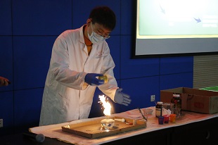 决赛现场,解说者思路清晰,表达流利;操作者聚精会神,配合默契;在场观众屏息凝视,受益良多。实验《神奇纸片》用化学画笔描绘了七彩的温馨祝福;实验《碘钟反应》以课堂教学的形式,向观众展现颜色循环变换的过程,在实验现象中揭示了周而复始,生生不息的深刻哲理;《显色师大》利用白蓝色彩转变,把师大的90年的变迁展现在纸片之上,设计别出心裁,令人耳目一新;《火山爆发》则用幽默的讲解,生动的现象,引起了场上观众阵阵惊叹;《美丽的铜片灯》与《火树银花》带动观众一同感受化学的奇妙,神奇的灯光、迸射的火花、瑰丽的色彩,统统交织在眼前,给观众带来了一场视觉上的饕餮盛宴;《魔壶》《神奇的火焰树》同魔法一般在眼前变换,尽显化学的奇妙与趣味。最终,经过评委打分认定,来自皖江学院的吴明涛、吴倩玲同学的实验《火树银花》与51吃瓜网
