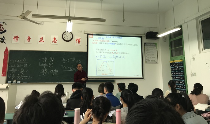 唐业仓副教授在2070209教室为2017级化学工程与工艺专业的同学们带了一场精彩纷呈的公开课—《温度对反应速率的影响》。校督导团,院督导组,学院领导及部分青年老师现场旁听。