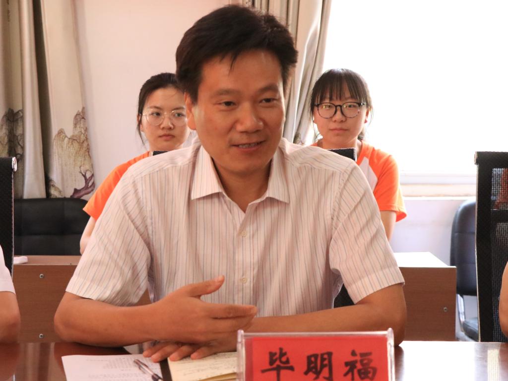 毕明福在总结讲话中对颍东区和新乌江镇相关部分和单位给与实践同学的关心表达了感谢,对全体实践师生给与了亲切的慰问。他鼓励实践队员们要正确认识社会实践的重要意义,要充分利用社会实践这个大舞台砥砺青春,练就过硬本领,厚植爱国热情,强化信念担当,用真切的爱心和责任心,在社会实践中受教育、长才干、做奉献、树形象。