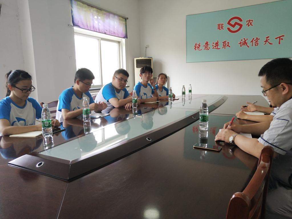 7月16日上午10点暑期实践的队员们经过几度的转车终于到达了马鞍山锐生工贸有限公司,何振铿总经理非常热情地率领公司的员工欢迎我们的到来,并在会议室内对公司进行了简单的介绍,随后暑期实践的小队员们分别从就业、创业以及公司的发展等多个方面对公司进行了提问。其中,何总特别强调了对于一个就业者而言,在大学期间的成绩及其表现对未来就职的重要性,并给暑期实践的队员们提出了诚恳的建议。