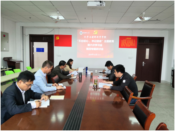 ) 10月11日下午,学院党委在707党员活动室召开“不忘初心 牢记使命”主题教育第四专题“勇于担当作为,办好人民满意的大学”集中学习和专题研讨。党员领导班子成员和部分教师支部书记代表参加了会议,会议由院党委书记汪俊武主持。
