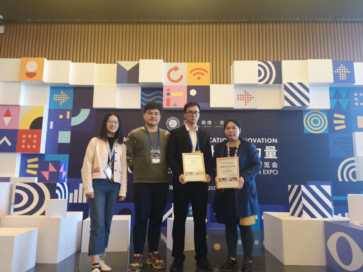 第五届中国教育创新成果公益博览会持续举办了四天,立足于新的历史起点,直面中国教育事业的新挑战、新机遇。除了路演比赛,团队各成员还积极同各大高校、公司代表人交流,就彼此的创新项目展开多维度的学习,取得深层次的共同进步。创新后的实践很重要,但实践后的反思以及再创新更重要。一次次的思想碰撞、论坛学习,使得团队以肉眼可见的速度迅速成长了起来,大大增加了团队项目的发展阈值,夯实了团队项目的发展基石。新时代、新任务、新要求,所有教育者都应为大力推进教育全面创新和开放出一份自己的力量,万千星火做燎原,以创新为教育事业激活力、添动力、增效力,以开放为教育事业聚群力、凝智力、汇合力。