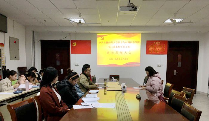本网讯(化工系本科生党支部 周 洁)12月5日晚,化工系本科生党支部召开了党员发展大会、组织生活会暨党员民主评议会。学院党委副书记余妍霞出席并作指导讲话,全体支部党员及发展对象参加会议,会议由支部书记程紫丹主持。