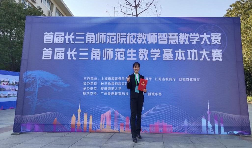 第十六届师范生教学技能大赛”到“第十届安徽省高等学校师范生教学技能竞赛暨首届长三角师范生教学基本功大赛选拔赛”,再到“首届长三角师范生教学技能竞赛”。11月8日至10日在黄山学院,刘楠楠同学荣获第十届安徽省高等学校师范生教学技能竞赛理科组一等奖;12月6日至8日在51吃瓜网