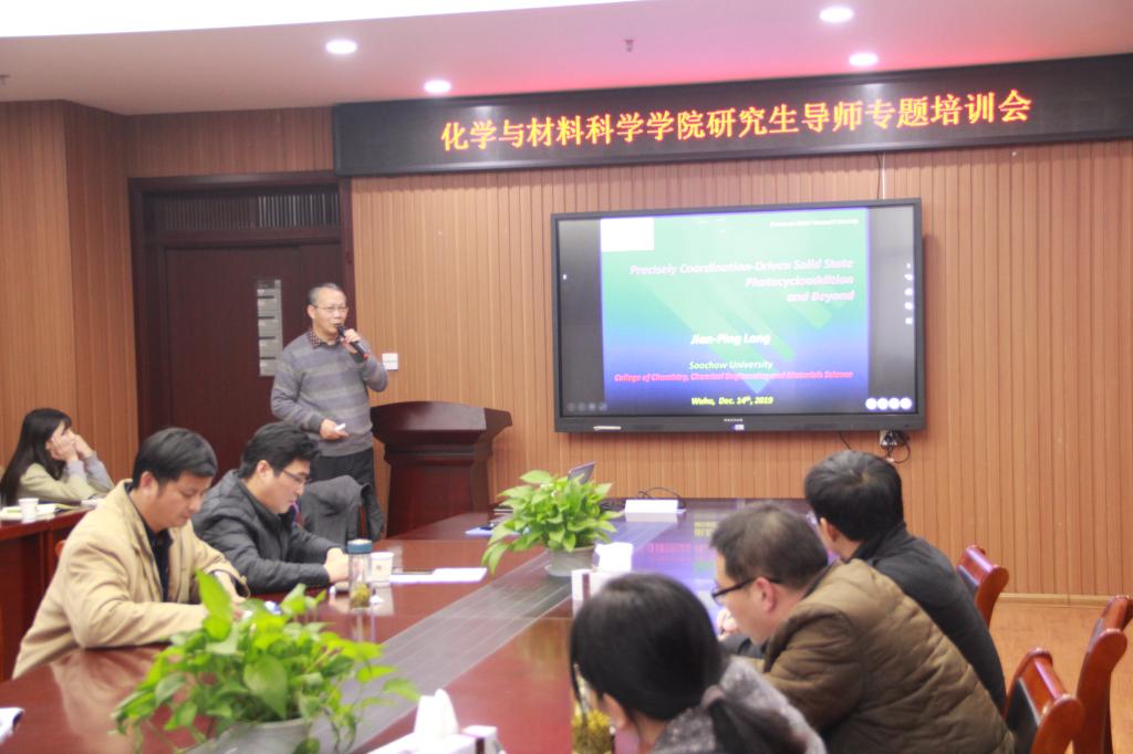 为进一步提高导师指导和培养研究生的能力、提升研究生培养质量,根据学校有关通知要求,12月14日下午,学院在礼勤楼702会议室召开研究生导师专题培训会,本次培训会特邀苏州大学郎建平教授做了题为“如何才能成为一名优秀的研究生导师”的培训报告。学院副院长周双六教授、张小俊教授,各学位点负责人及在校研究生导师参加了培训会。会议由院长高峰教授主持。