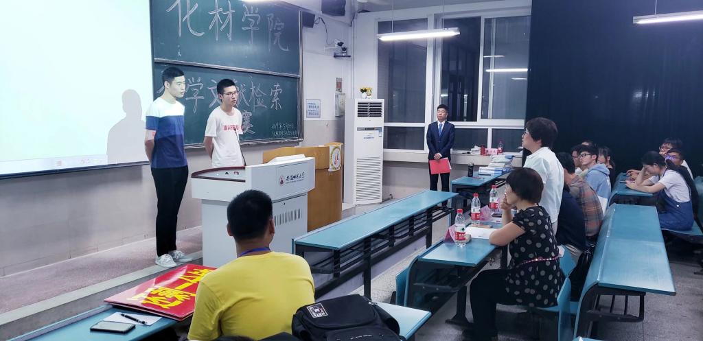 与此同时,为培养学生阅读化学文献的兴趣,掌握正确的文献检索方法,为提高科学研究能力打好基础,院团委学生会在五月份成功举办了“学术化材——第五届化学文献检索大赛”。参赛选手有的以文献检索在翻转课堂具体应用为例,用论文展示了自己学习成果,生动描述检索过程中实际的应用收获;有的就文献检索考察纳米材料对重金属吸附作用,介绍文献检索的大致方法,总结自己文献检索的技巧。答辩环节由评委老师进行提问,考察学生对知识的掌握情况和综合应用。各组演讲内容严谨详实,各具特色,答辩过程精彩纷呈,展现了化材学子具备着相当水准的文献检索能力。