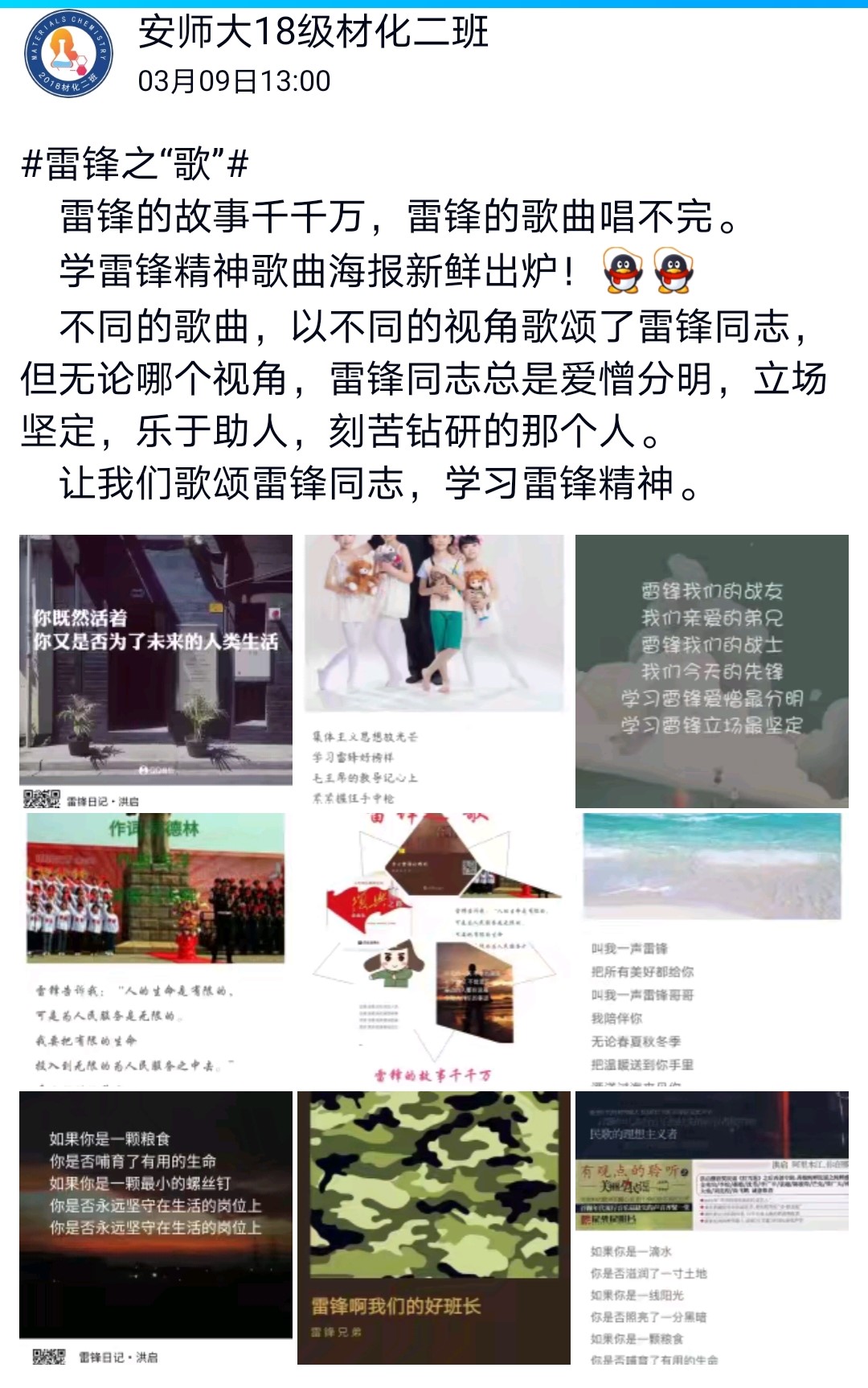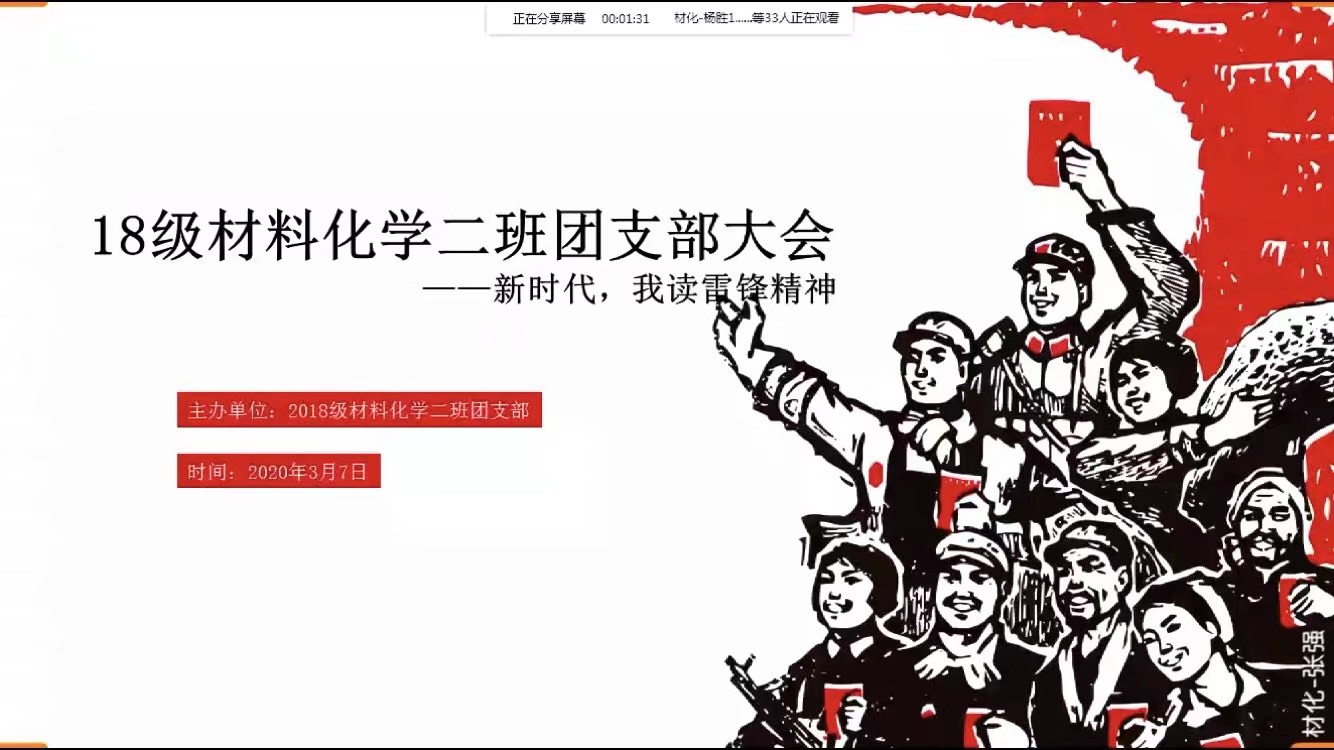 团委在全院团员青年中开展了以“践行雷锋精神,争做青年防疫志愿者”为主题的“学雷锋月”网络主题团日活动,引导广大团员青年们学习分享抗“疫”英雄事迹,自觉向抗“疫”英雄们看齐。活动中,广大团员青年以团支部为单位,利用多种网络平台,开展了形式多样、内容丰富的主题团日活动。通过观看视频重温雷锋事迹、录制音、视频、微团课、手抄报、海报、撰写心得体会等多种方式向雷锋和抗击疫情的逆行者致敬并表达了对祖国的美好祝福。