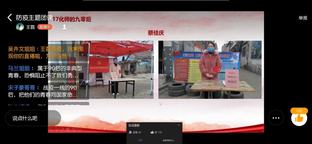 团委及时转变、不断创新思想政治工作内容和形式,强化疫情防控中的典型事迹和模范人物的榜样和引领作用,积极开展线上教育和管理。通过主题鲜明的团日活动,有效引导广大团员青年树立正确的人生观、价值观和世界观,充分发挥共青团党的助手和后备军的作用,为抗击疫情贡献青春力量。