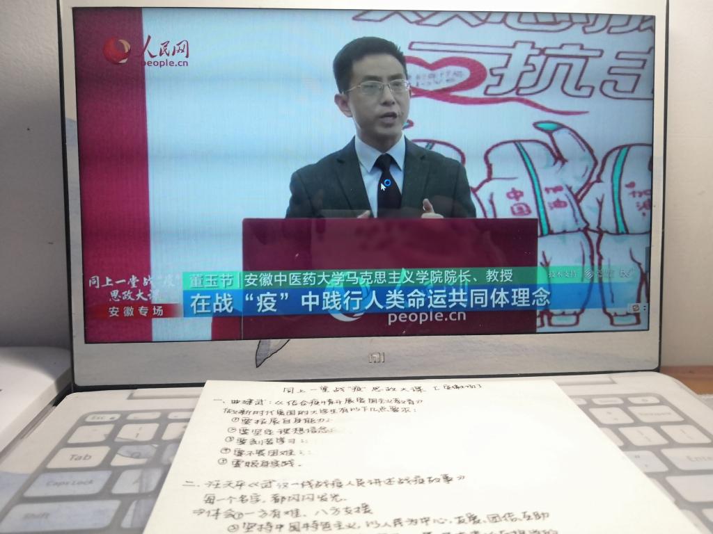 党委积极组织全体师生在线观看由中共安徽省委宣传部、中共安徽省委教育工委、安徽省教育厅与人民网联合举办的“同上一堂战‘疫’思政大课”安徽专场直播。