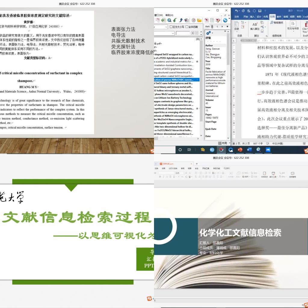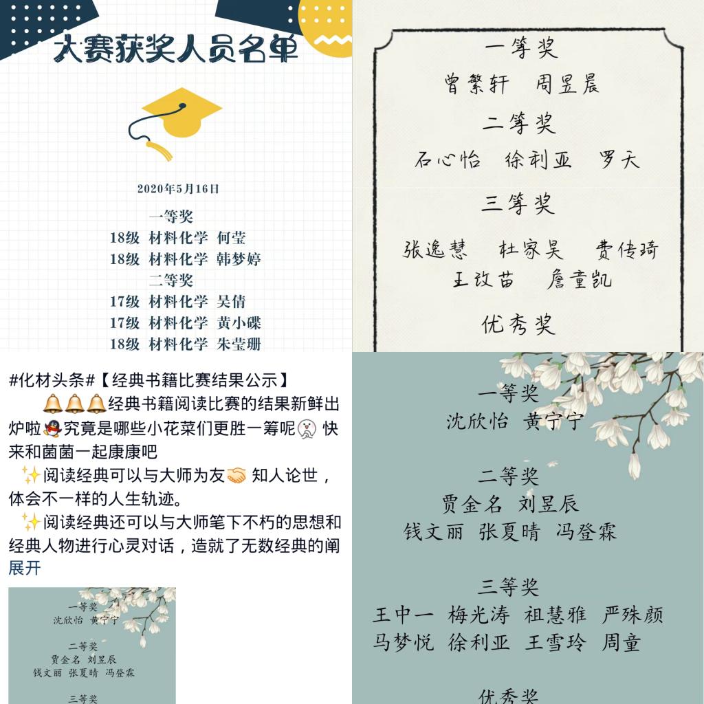 针对网课的开展情况,特举办学生课堂笔记大赛,以巩固所学知识,提高线上教学的效率。同时结合专业特色,根据不同年级的需求,针对17级开展化学文献检索大赛、18级开展化学实验知识竞赛、19级开展“科普化材”化学科普知识竞赛。在化学文献检索大赛中,参赛选手根据所学专业知识,进行精彩的PPT演讲汇报和答辩,充分展现了专业技能。此外,“科普化材”化学科普知识竞赛、化学实验知识竞赛等活动以知识竞赛的形式对接专业知识,丰富了文化生活,提升了自身的专业素养。