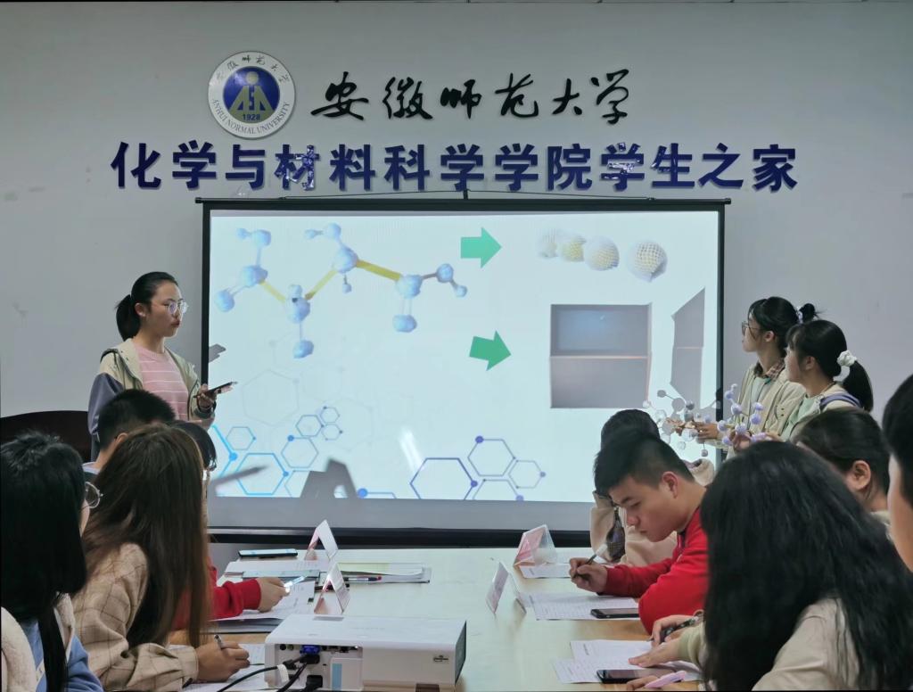 赛前,各组参赛选手认真制作了分子模型的说明书,从分子性质、用途等方面初步介绍了自己制作的分子模型,在比赛现场,各组汇报人从分子模型设计思路、制作材料等方面进行了详细的介绍。面对各位评委对作品创作理念与心得的询问,并结合参赛作品的手工技巧、创新性、科学性等方面做出评分。活动最后,曹右林老师与郑丽老师对分子模型的环保性与实用性给予了高度评价,并对大家寄予厚望。
