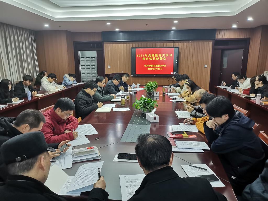 在礼勤楼702会议室召开2021年党建暨党史学习教育动员部署会,学院党政班子成员、党委委员、各党支部书记及支委参加会议。会议由学院党委书记汪俊武主持。