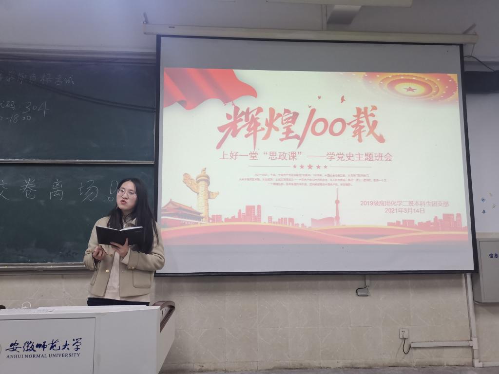 组织开展思想政治教育引领。各班级、党支部、团支部通过开展“学党史”主题班会、观看习近平总书记在党史学习教育动员大会上的重要讲话精神视频、传达学院党史学习教育动员部署会精神、组织开展团支部“学党史、强信念、跟党走”专题组织生活会等方式,强化学生政治教育,引领广大同学学史明理、学史增信、学史崇德、学史力行。