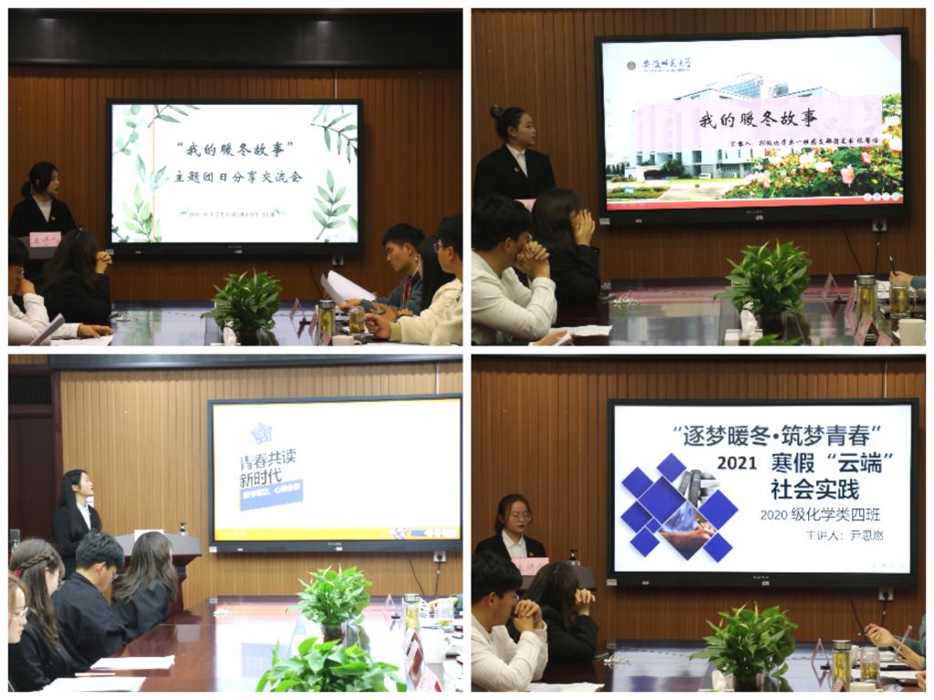 随后,由各团支部推选的团员代表通过视频、文字、图片等形式,阐述了自己的暖冬故事、感想以及收获进行个人汇报。经过材料查看、听取汇报,最终评选出了5个优秀团支部、10名优秀个人。