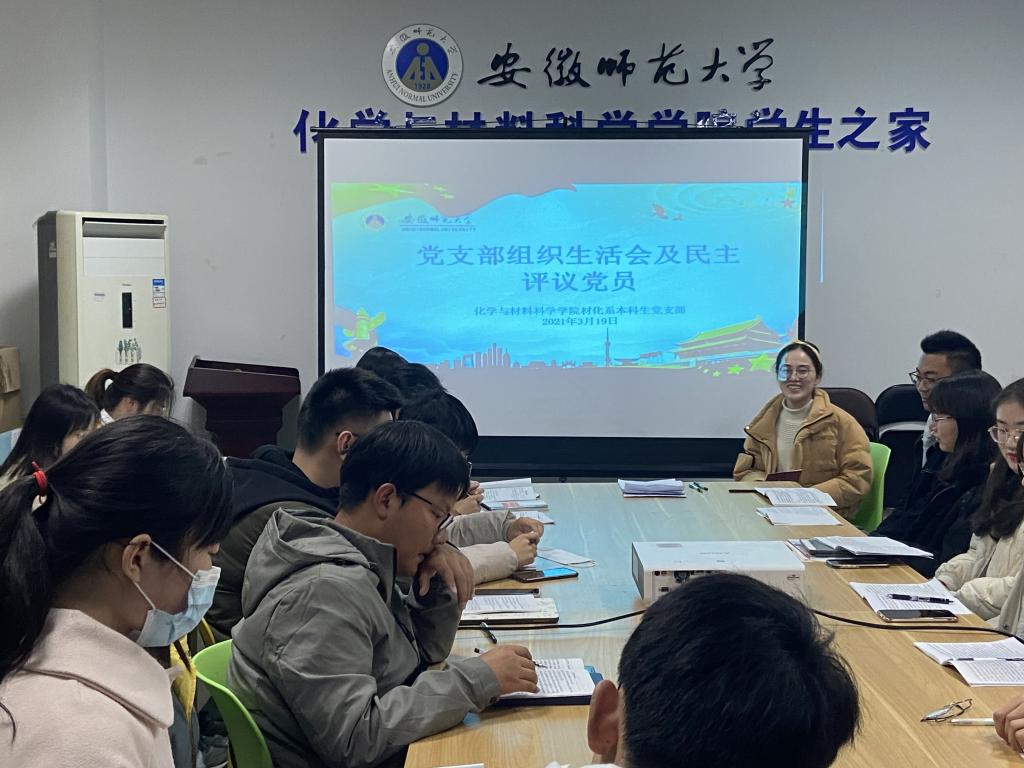 本网讯(材化系本科生党支部 秦路路) 3月19日下午,材化系本科生党支部于礼勤楼717活动室开展了2020年度组织生活会,并进行了民主评议党员,此次会议由支部书记王芳老师主持。