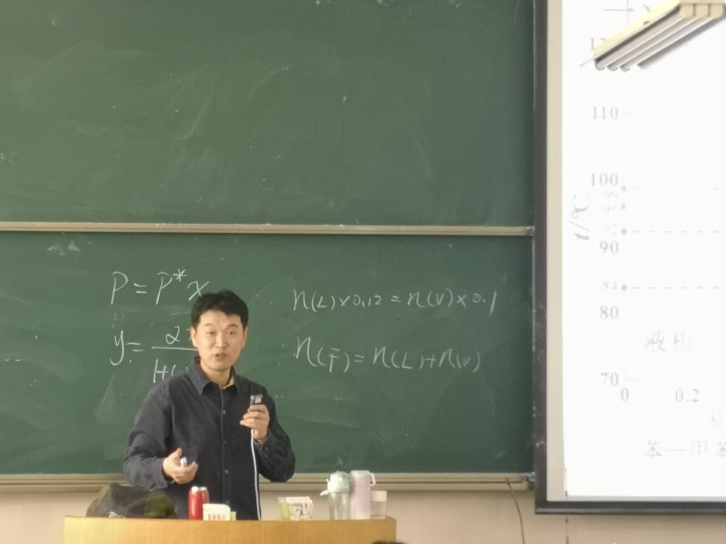 罗天 汪淼)5月24日上午9:50,王伟智副教授在行知楼2030103教室进行本科教学公开课,为2019级化学专业的同学讲授《化工基础》中“精馏的原理”相关内容。学院督导组老师及部分教师参加了此次课程观摩活动。