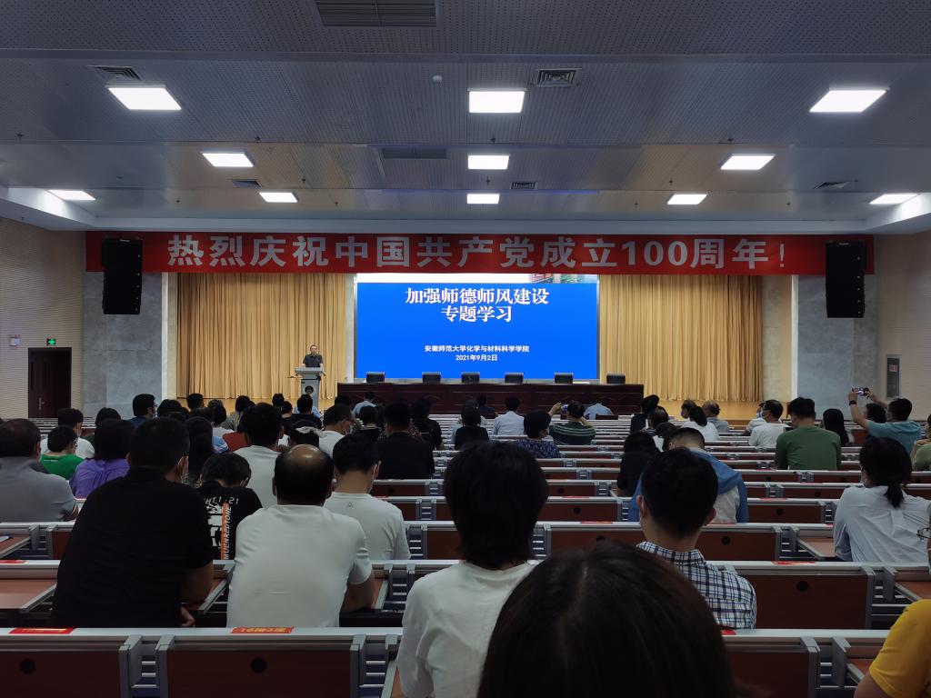 加强师德师风建设专题学习由学院党委书记汪俊武主讲,他以加强师德师风建设的重要意义、具体内容、途径与对策为主线,领学了习近平总书记关于师德师风建设的重要论述、全国高校思想政治工作会议精神、全国教育大会精神,详细解读了教育部、省教育工委、学校、学院不同层面关于师德师风建设的重要制度文件。他强调,师德师风是教师职业发展的决定性因素,全院教师要突出主体作用,强化自身的学习教育,自觉主动加强自身的师德师风建设。
