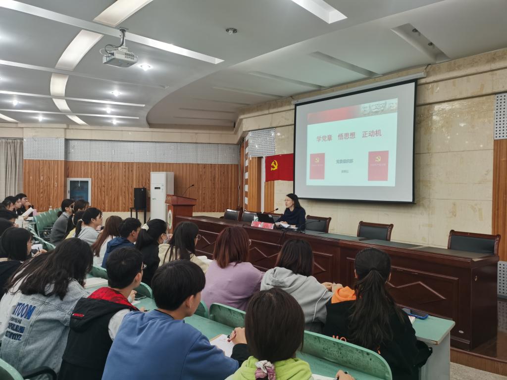 校党委组织部副部长余妍霞作《学党史、悟思想、正动机》的专题报告。她通过影片和文字资料讲述了6个共产党人用生命守卫信仰,用热血践行使命的动人故事,学员们真切感受到共产党人践行党章的初心和使命。余部长详细介绍了党章的历史沿革和主要内容,让同学们深刻领会到党章的基本内容以及深刻内涵,通过看《榜样》有所触动,学《中国共产党章程》有所启发,从而不断端正入党动机。