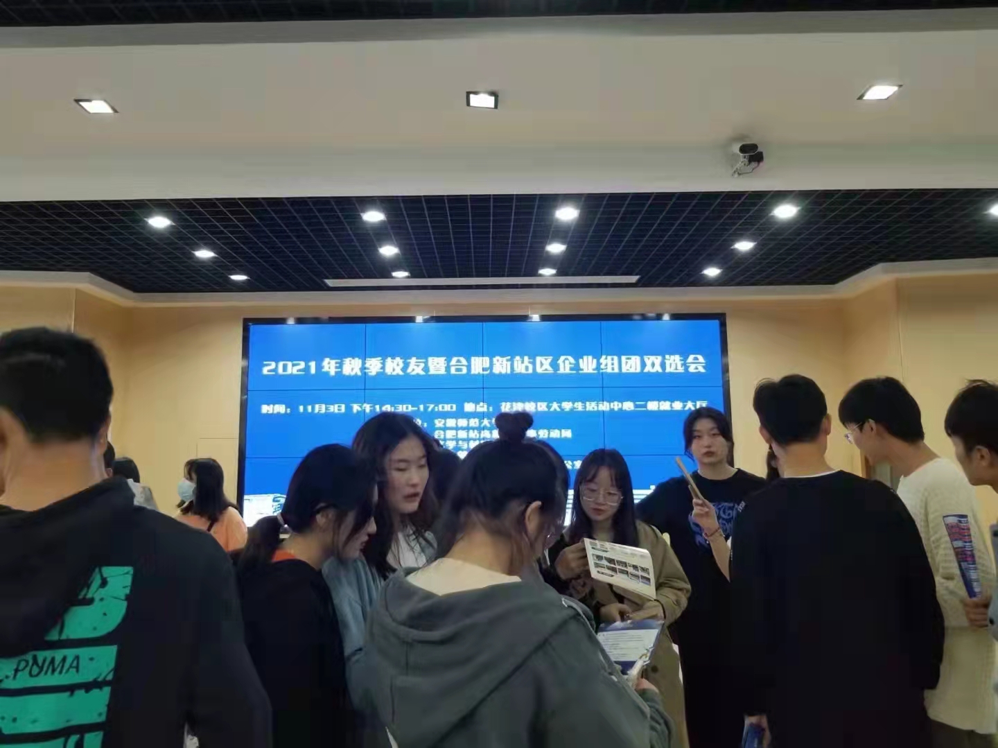 承办的2021年秋季校友暨合肥新站区企业组团双选会在花津校区大学生活动中心二楼就业招聘大厅举办。本次招聘会吸引了包括合肥京东方、国轩高科、乐凯科技、光晋科技、微睿光电、维信诺科技等50多家优质企业参会,招聘岗位涵盖化工、材料、化学、机械、电气、计算机、人力资源等诸多专业。